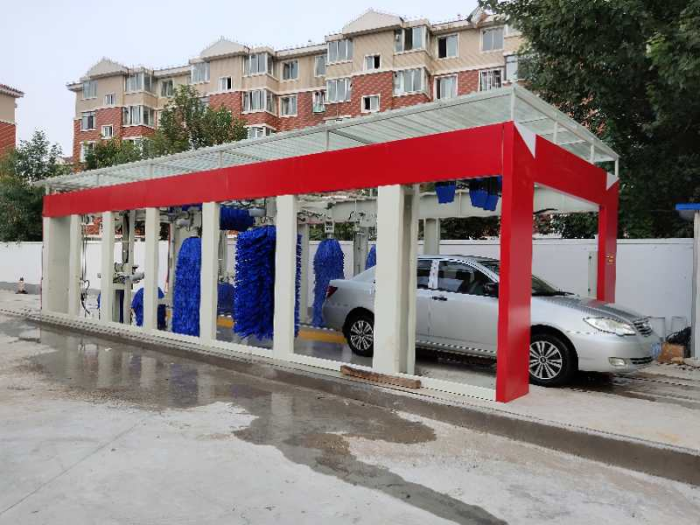 湖南中石化永州加油站的藍天LTS2-9QG隧道式洗車機已安裝完成并交付用戶使用。全新電腦PLC控制,光電感應識別技術,一體式車輪導正器,效果震撼,客戶表示不僅產品做得好,而且安裝工程師也非常的專業,很細心,安裝標準高,選擇藍天很正確。