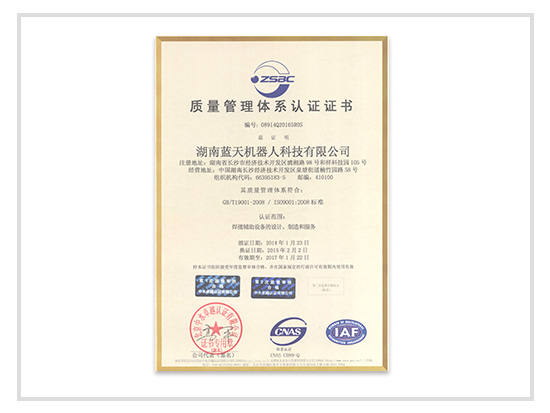 Certificate of quality certification